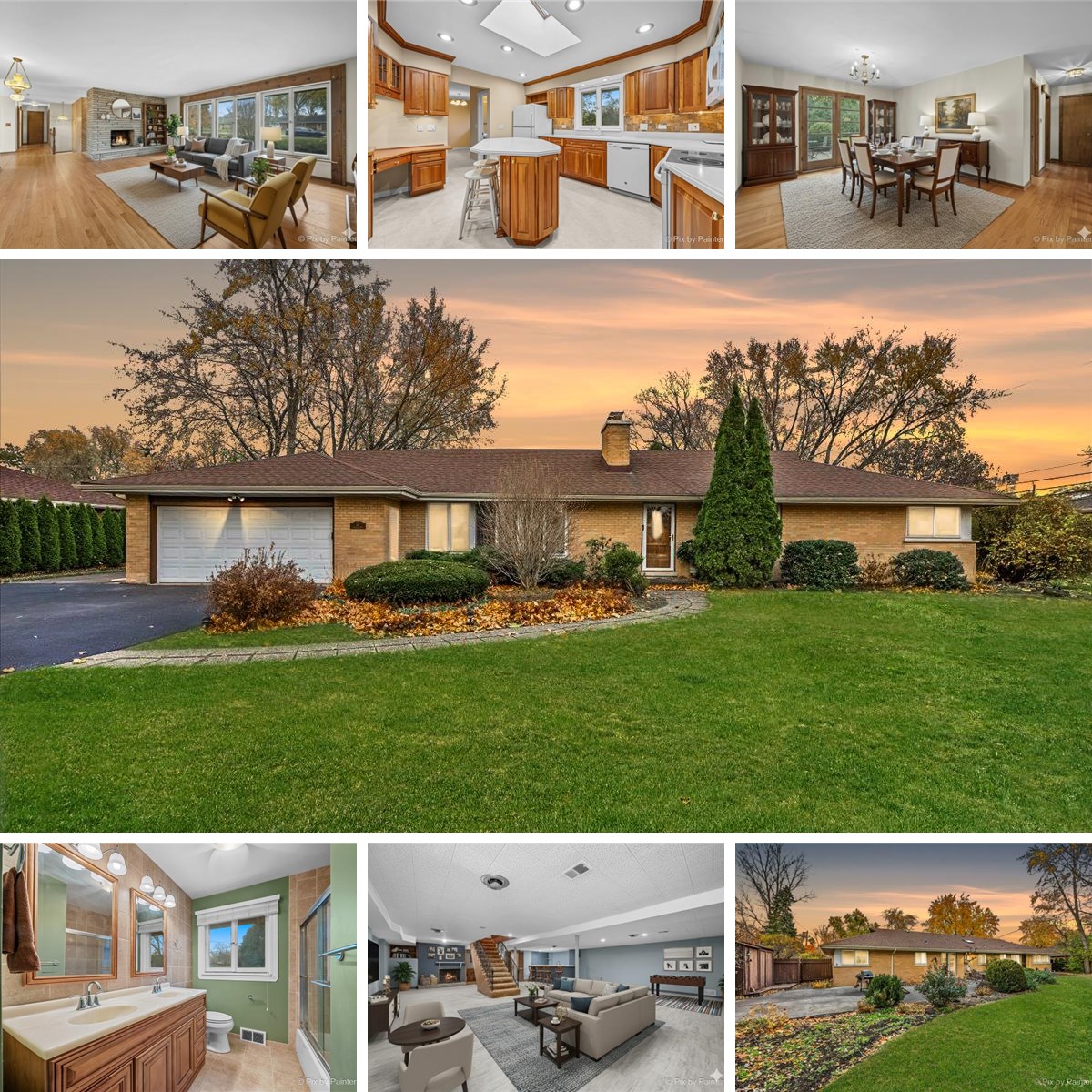 Beautiful brick ranch on nearly 1/2 acre! This spacious 4-bed, 2.1-bath home offers a fantastic layout and incredible potential. Three bedrooms feature hardwood floors, and the bright living room impresses with wood flooring, expansive windows, and a stunning brick fireplace with gas starter. The kitchen includes custom cherry cabinetry and flows into a separate dining room with backyard access. Enjoy even more living space in the full finished basement, complete with a cozy fireplace, wet bar, and a large bonus room perfect for an office, playroom, exercise space-endless possibilities! Step outside to a professionally landscaped yard with a huge patio ideal for entertaining, plus two storage sheds for all your extras. Being sold AS IS. Don't miss this opportunity-schedule your tour today!