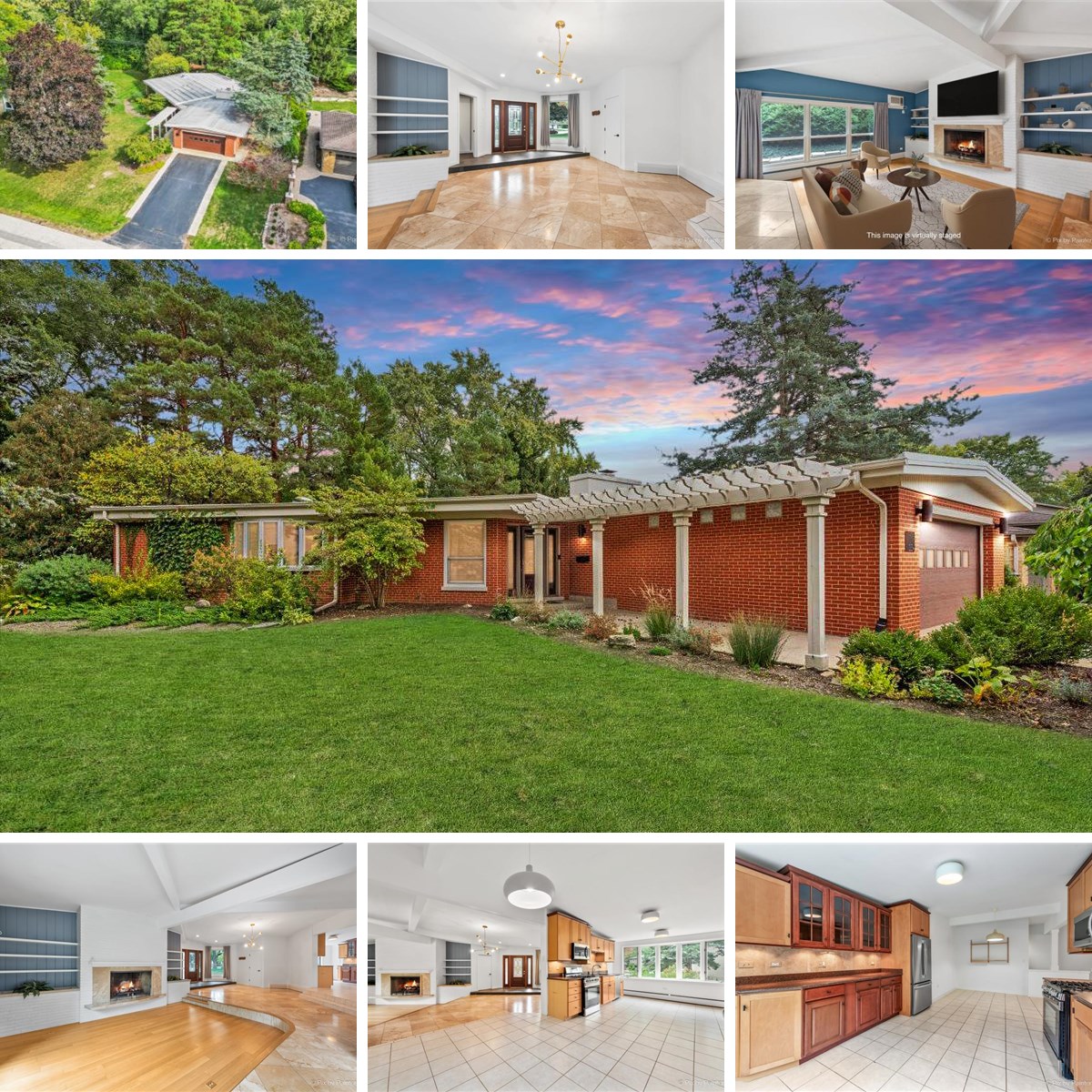 Mid-Century Modern for Rent in Barrington Meadows! This stunning home was designed by Harry N. Johnson and was featured as the Chicago Tribune's Home of the Week in 1963. You will love the open floor plan with beautiful and unique design details throughout. As soon as you walk in the front door you will notice the marble-floored foyer that opens into a spacious eat-in kitchen and a dramatic sunken living room with vaulted ceilings, exposed beams, and a large brick fireplace - perfect for relaxing or entertaining. The den located steps from the living room leads to a private patio and beautifully landscaped outdoor space ideal for morning coffee or evening gatherings. The home features three bedrooms with vaulted ceilings and generous closet space, plus a full bathroom with a sunken shower and a serene, walled-in Japanese garden for a spa-like feel. There is also a half bath that has been completely remodeled. The two-car attached garage leads you to a fabulous mud room and huge closet. Located in the charming Barrington Meadows neighborhood, this home is a short distance to beautiful Citizen's Park, the Barrington Library, Metra and the heart of Barrington Village. Enjoy the best of Mid-Century design and suburban comfort - available now for lease!