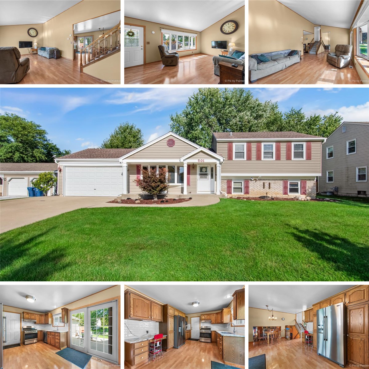 You are going to LOVE this beautifully maintained 3 bedroom, 1.1 bath home that has everything you've been searching for. Possibility of 4th bedroom in lower level--Owner removed wall in Family Room to enlarge it. The professionally landscaped yard is beautiful and very inviting! Step inside to find a spacious living room with vaulted ceilings and vinyl wood flooring. The eat in kitchen offers the ideal space for everyday meals and gatherings. The oversized family room has a cozy wood-burning fireplace, new carpeting and is perfect for relaxing or entertaining. The bedrooms are all great sizes and the updated master bathroom (2024) adds a modern touch. Enjoy summer evenings in your own backyard retreat, featuring a concrete patio and built-in gas grill (2025) and oversized 12x12 shed. With a 4-CAR TANDEM GARAGE, you'll have plenty of room for vehicles, storage, or hobbies. Additional highlights include brand new carpet in all bedrooms and the family room, making this home move-in ready. Located close to expressways, dining, shopping, and highly rated schools, the convenience can't be beat. This is truly a home you don't want to miss-schedule your showing today! Additional highlights include Furnace, A/C (2024), hot water heater (2023).