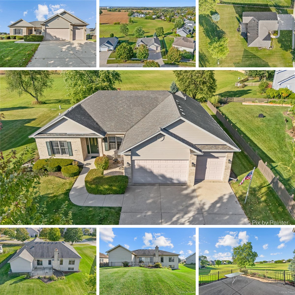 RARE PREMIUM LOT LOCATION! This LARGE 2051 SF front brick semi-custom RANCH home on approximately 1/3 acre BACKS to a large OPEN SPACE! This 3 bedroom, 2 bathroom home, partial English/Lookout basement offers rough-in plumbing for a 3rd bath & 1 year NEW windows! 3 car attached HEATED garage! Cute front brick paver patio also greets you to the front entrance! Leaded front door entry & sidelights! Hardwood floors are in main areas! Formal foyer & dining rooms! Crown moldings in foyer, living/family room, master bedroom & 3rd bedroom/office! Spacious kitchen with elevated cabinets, glass cabinet & stainless steel appliances (except dishwasher)! Eating area off of kitchen! Ceiling fans in all bedrooms plus in family room! Fireplace in living/family room! Master bedroom has a large walk-in closet! Master bathroom has 2 separate sinks with extra vanity, linen closet, large corner whirlpool tub and separate shower! Large laundry room with plenty of cabinets, window & sink! There is a central vac system! Enjoy the cement patio with awning surrounded by a wrought iron fence to enjoy the private open area! All smoke & carbon monoxide detectors have been recently replaced! Bring your own decorating ideas! Home has been loving cared for & well maintained! (Please note that everything is original except for the stainless kitchen appliances, washer/dryer, water heater installed in 2013 & NEW windows in basement in 2024.) This is a very desirable location in the subdivision and less than 5 minute drive to quaint downtown Hampshire! (All furniture in home can stay for no additional cost- seller can also remove prior to closing.) Although nothing of concern, home is being sold AS-IS.